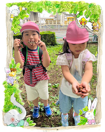 ひつじ組「みてみて、こんなにどんぐりみつけたよ〜」